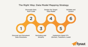 Modernization success hinges on a clear data mapping strategy. Flynaut’s proven framework uses six deliberate steps to migrate COBOL-era data models safely to the cloud, a process heavily supported by our cloud migration consulting, process automation services, and enterprise transformation consulting practices.